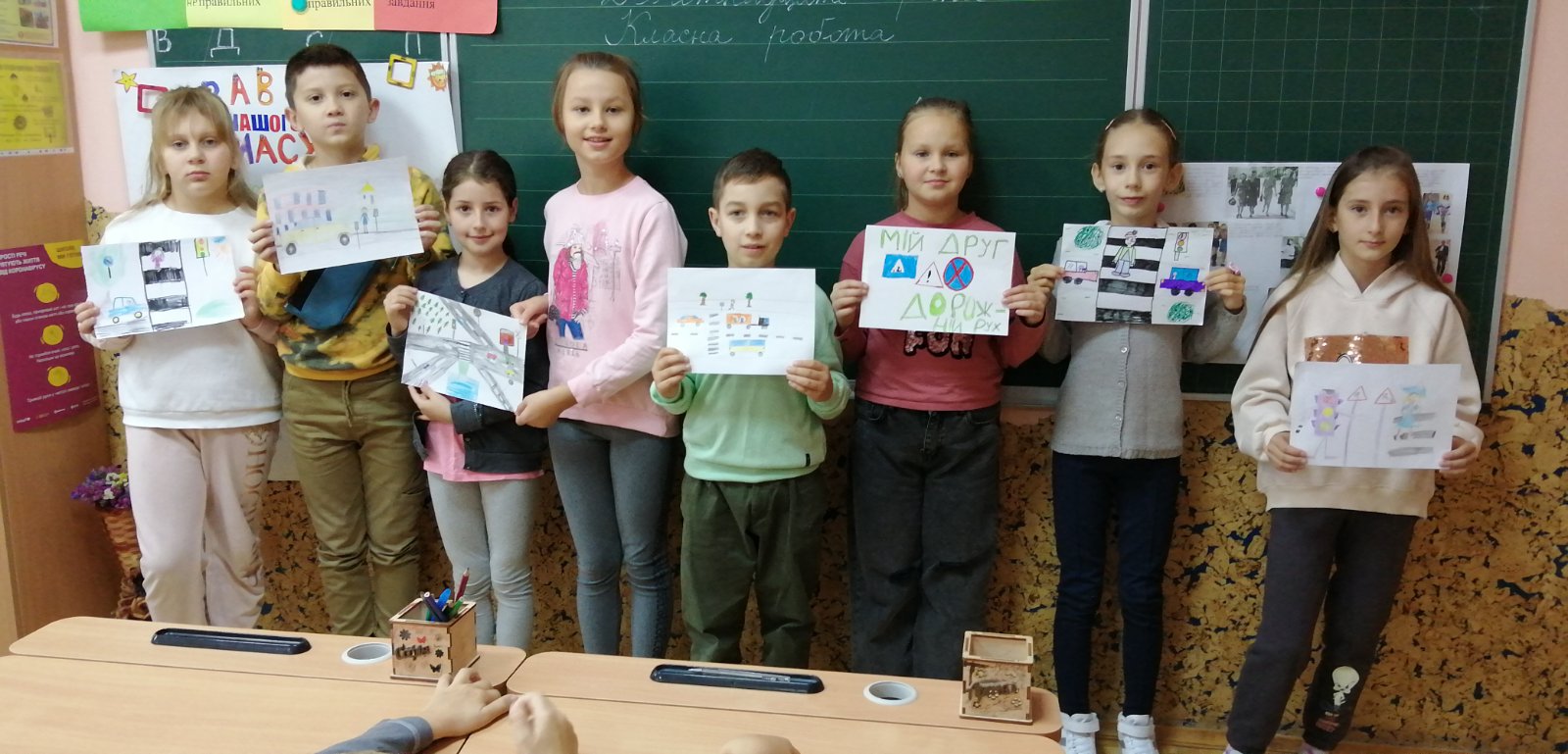 В рамках місячника “Увага! Діти на дорозі”, було проведено: виховні години, ранкові зустрічі, бесіди “Азбука безпеки”, “Обережно! Дорога!”. Учні презентували свої малюнки.