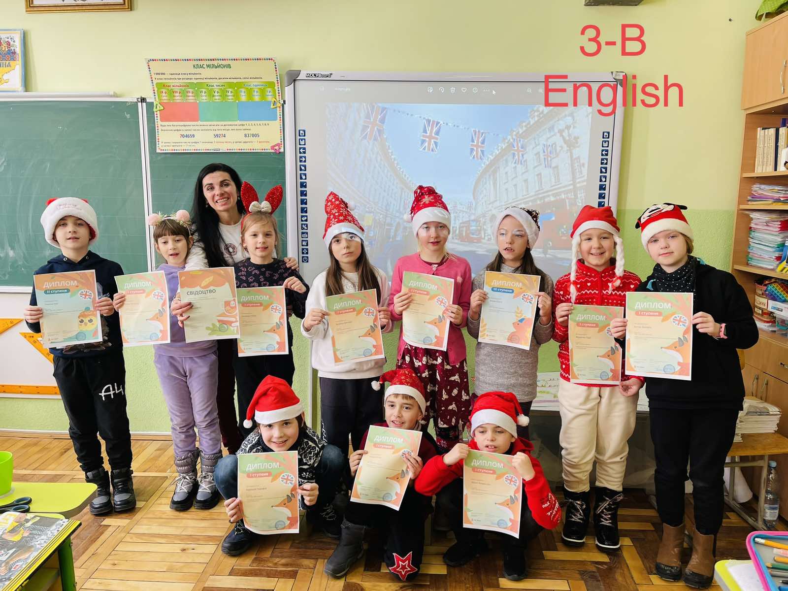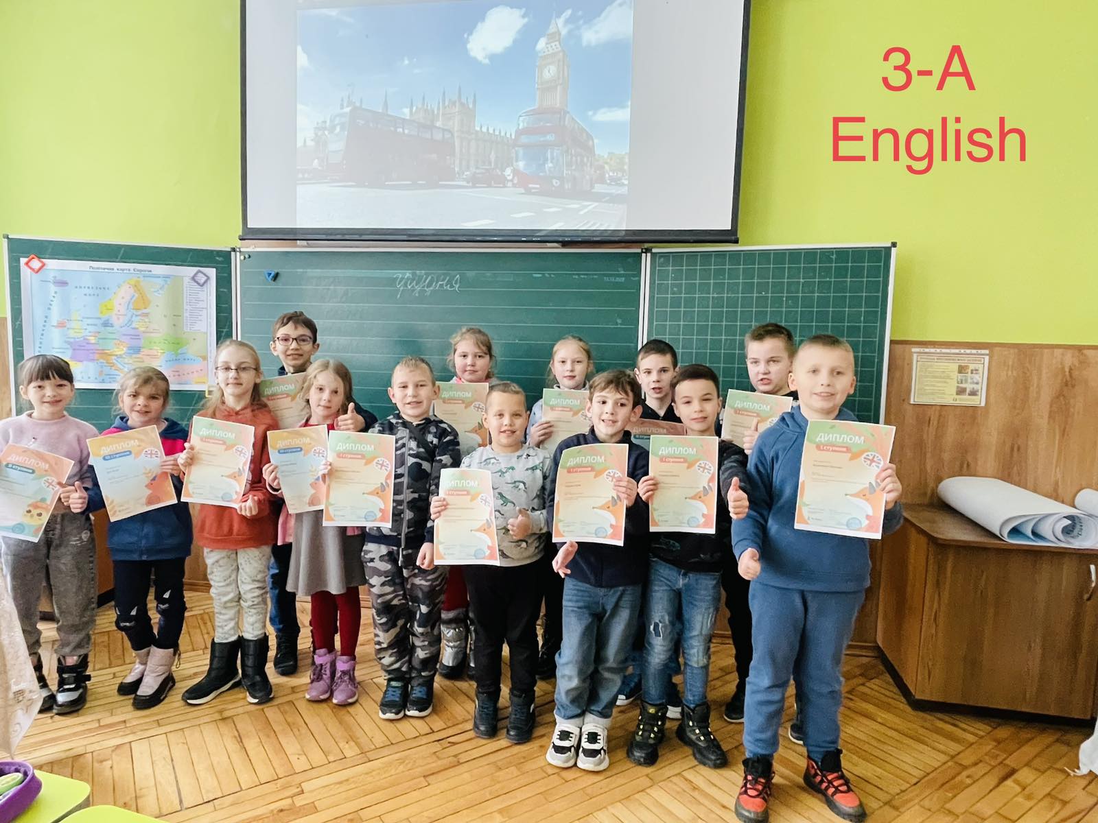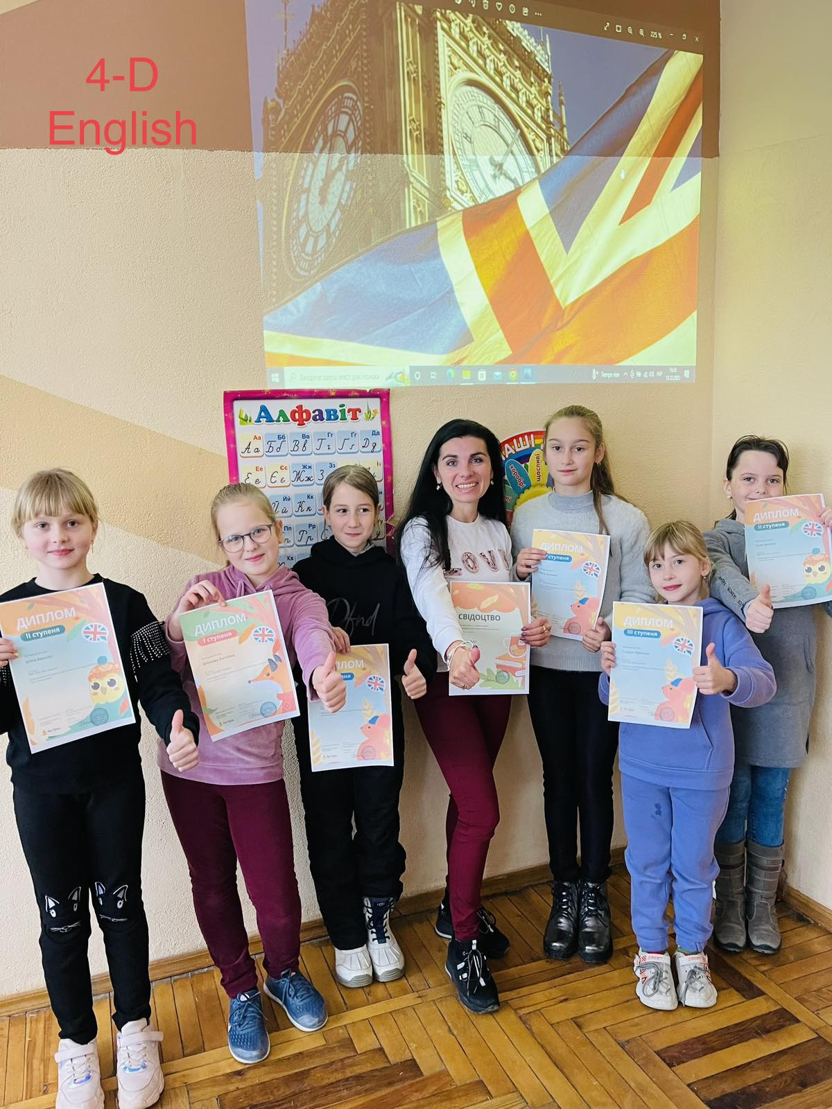 Congratulations!!!🏆Вітаємо Переможців XV Всеукраїнської Олімпіади з англійської мови учнів 3-А, 3-Б та 4-Г класів, які навчаються за програмою «Інтелект України» та НУШ. Бажаємо Вам нових досягнень та подальших перемог!! Вчитель: Леся ДУКАС