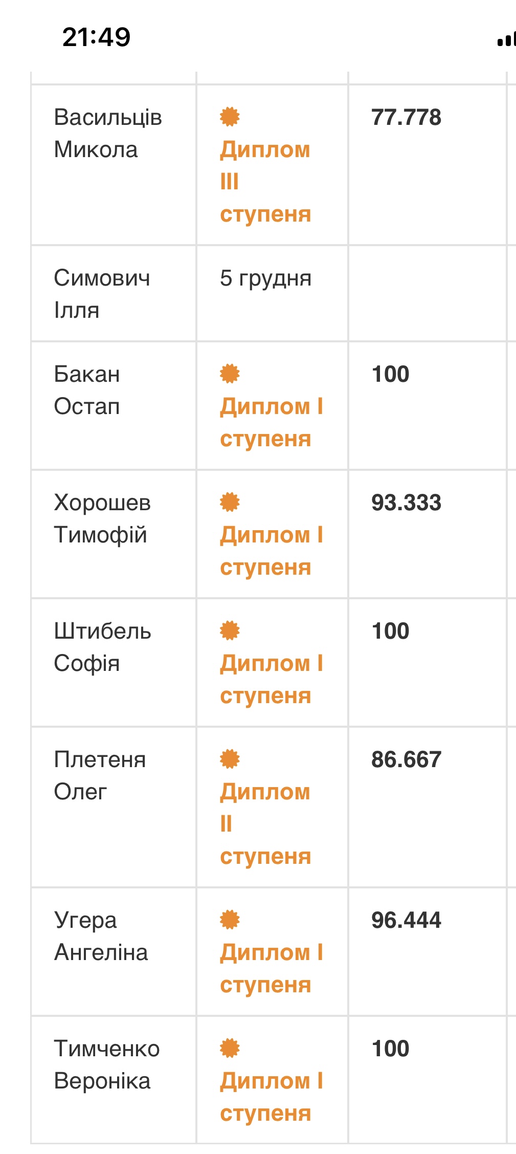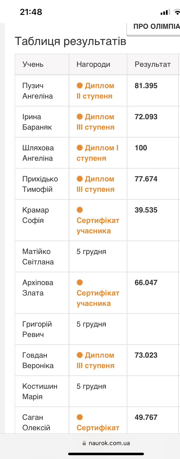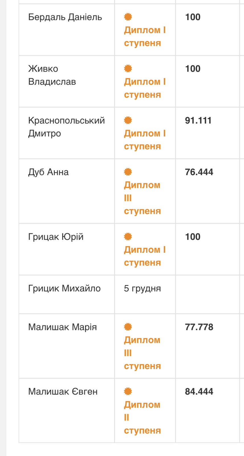 Congratulations!!!🏆Вітаємо Переможців XV Всеукраїнської Олімпіади з англійської мови учнів 3-А, 3-Б та 4-Г класів, які навчаються за програмою «Інтелект України» та НУШ. Бажаємо Вам нових досягнень та подальших перемог!! Вчитель: Леся ДУКАС
