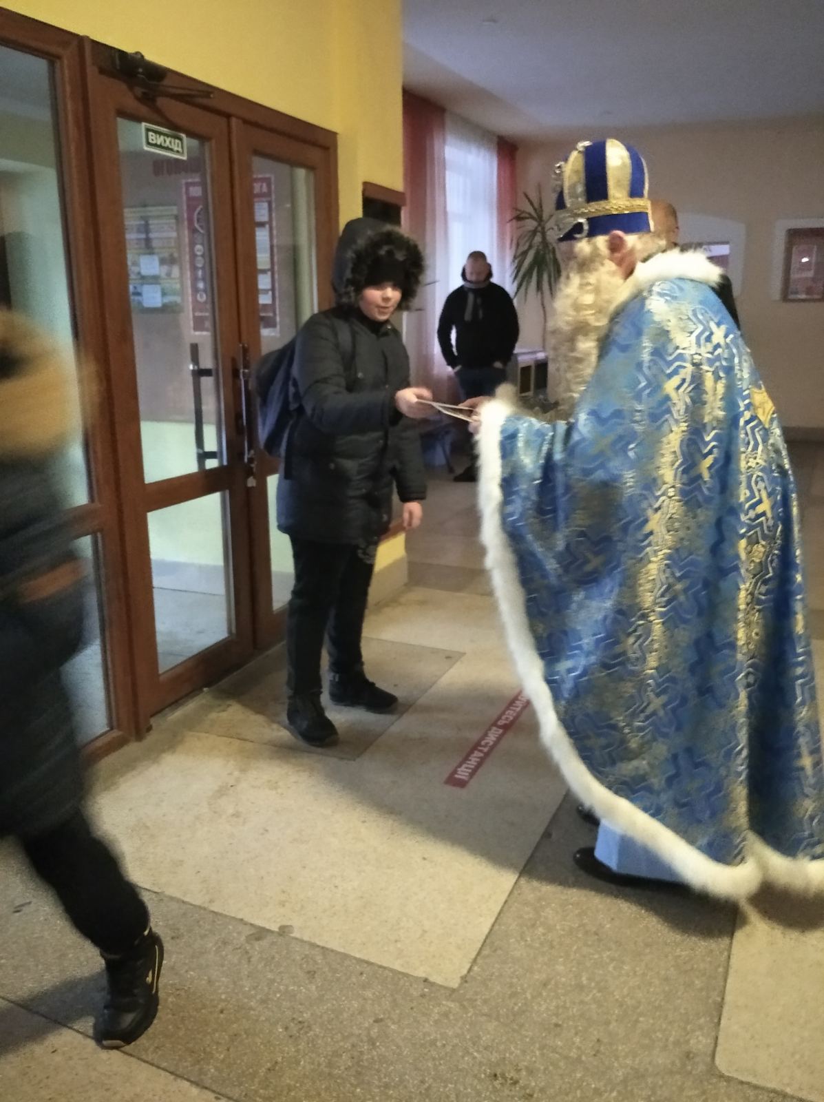 Сьогодні в Україну завітав святий Миколай. Розклавши подарунки під подушки, він прийшов у НВК “СЗШ N2-гімназія”. Зустрів дітей і вчителів. Подарував молитвенники, мандаринки, цукерки. А головне – радість і любов. Школа розцвіла усмішками. Гарно розпочався тиждень.