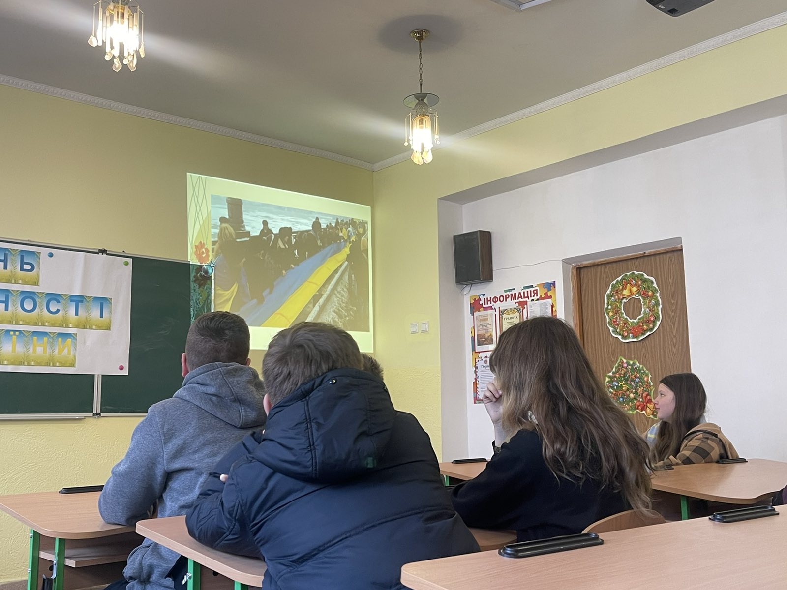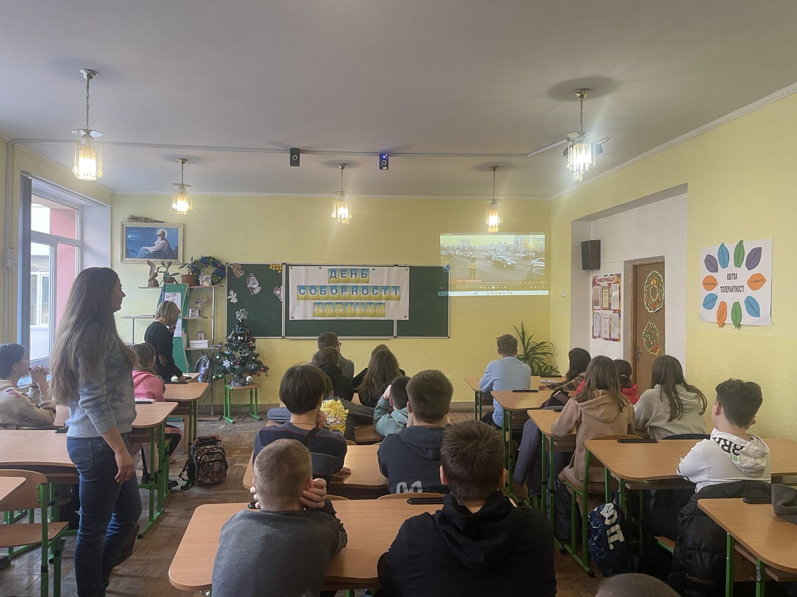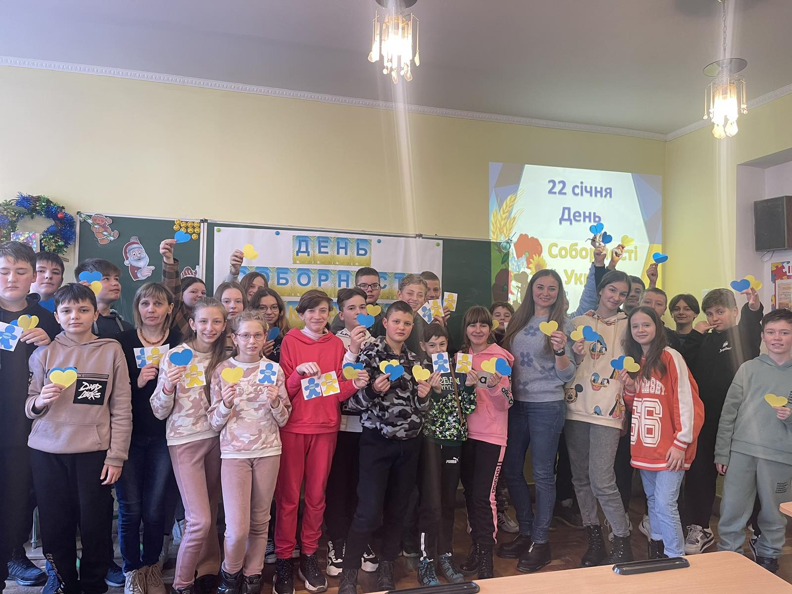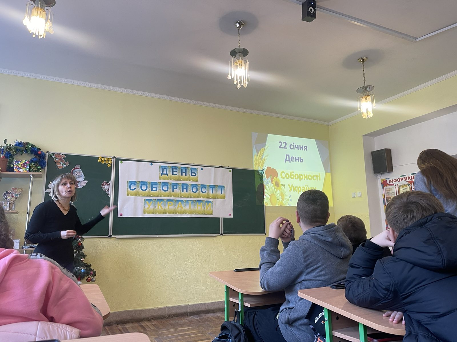 Педагог – організатор Галина АНТОХІ з класним керівником Ольгою ТЕРЕС та учнями 7-Б класу провели виховну годину, приурочену 104-ій річниці об’єднання східних та західних земель “День Соборності України”.