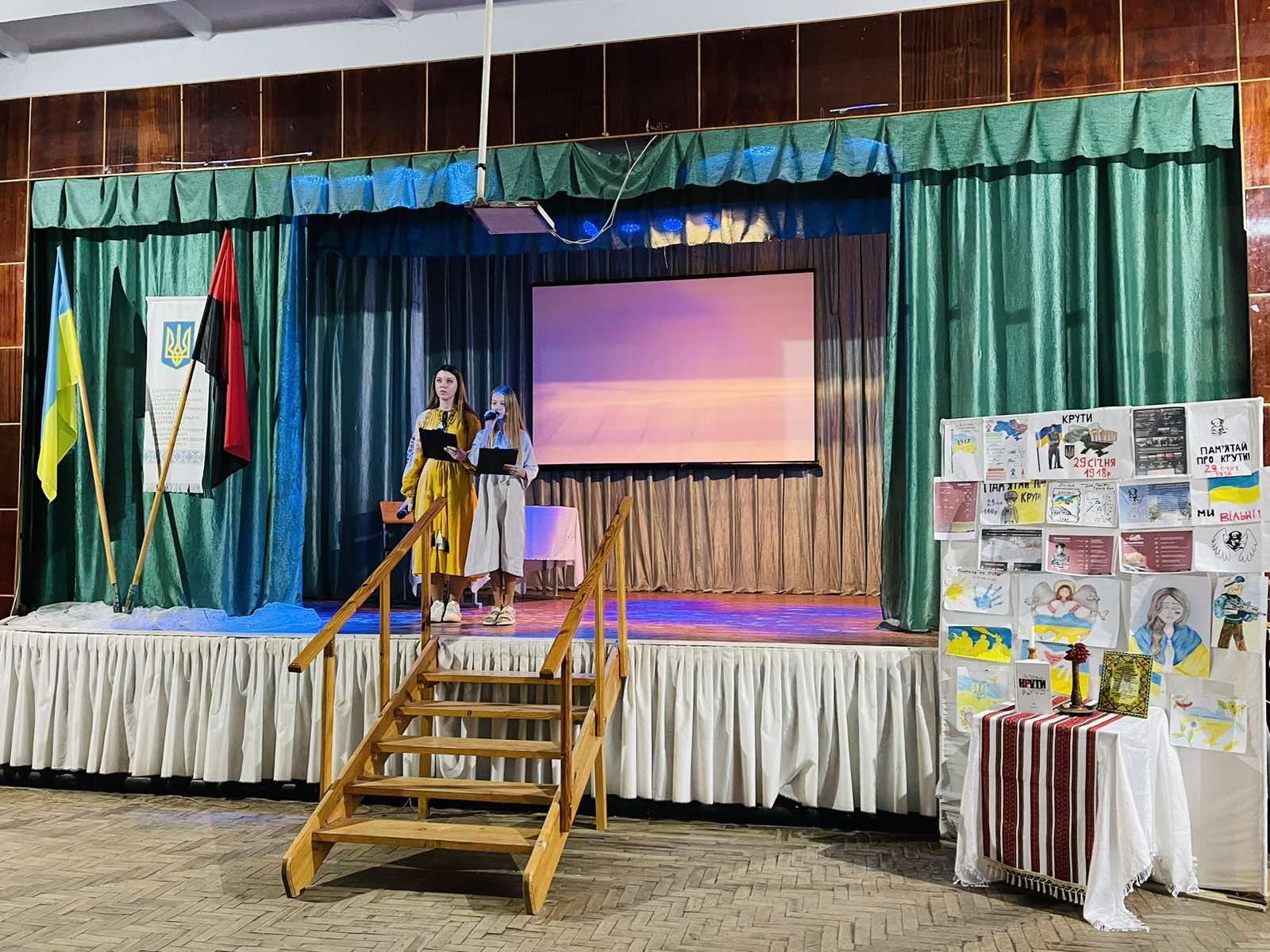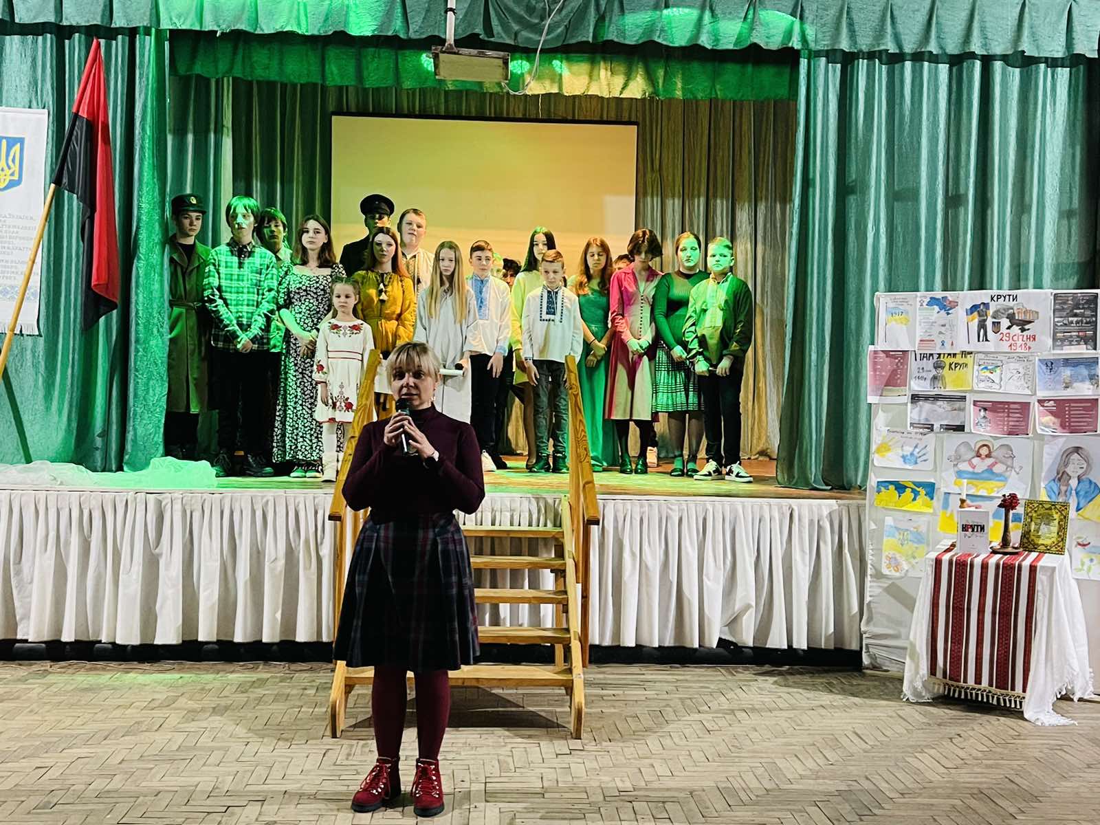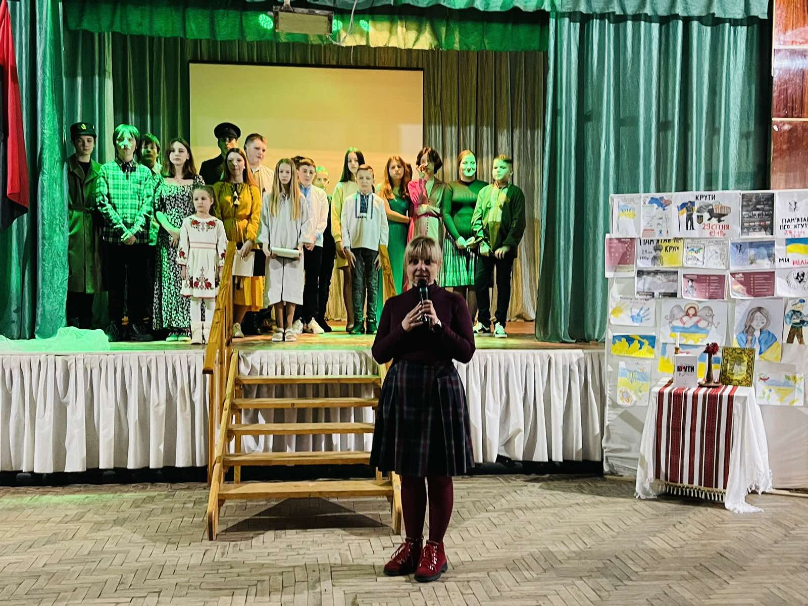 Педагог-організатор Галина АНТОХІ провела виховний захід “Легендарні Крути” для учнів 8- 10 класів. “Пам’ятаймо про тих, хто загинув під Крутами та гине в даний час за нашу свободу».