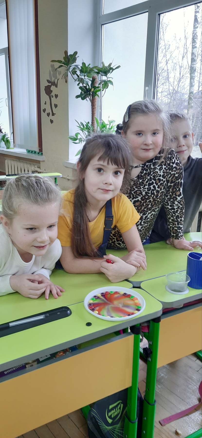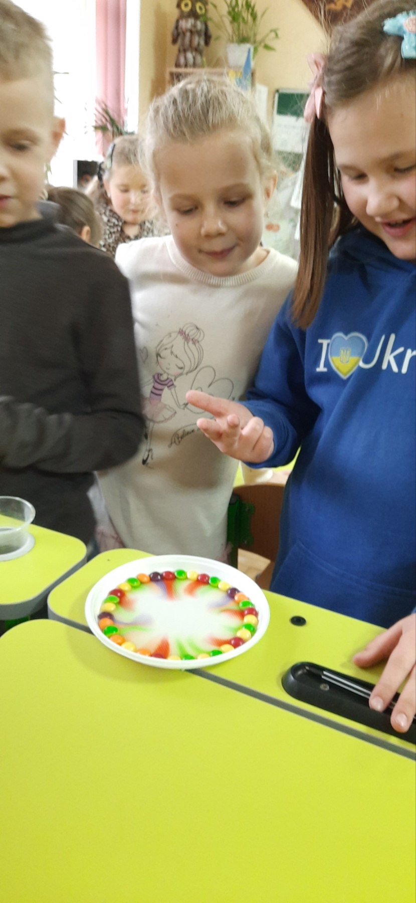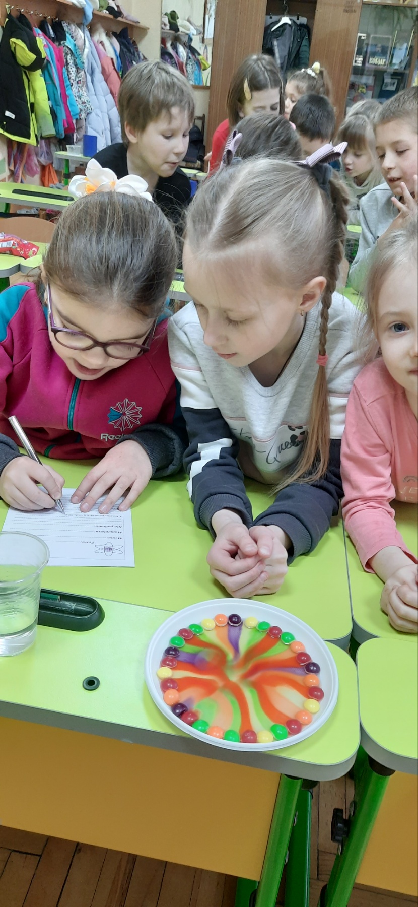 Діти переконалися, що молекули хаотично рухаються, змішуються, але замислилися над іншим … чи можна вживати фарбу ?