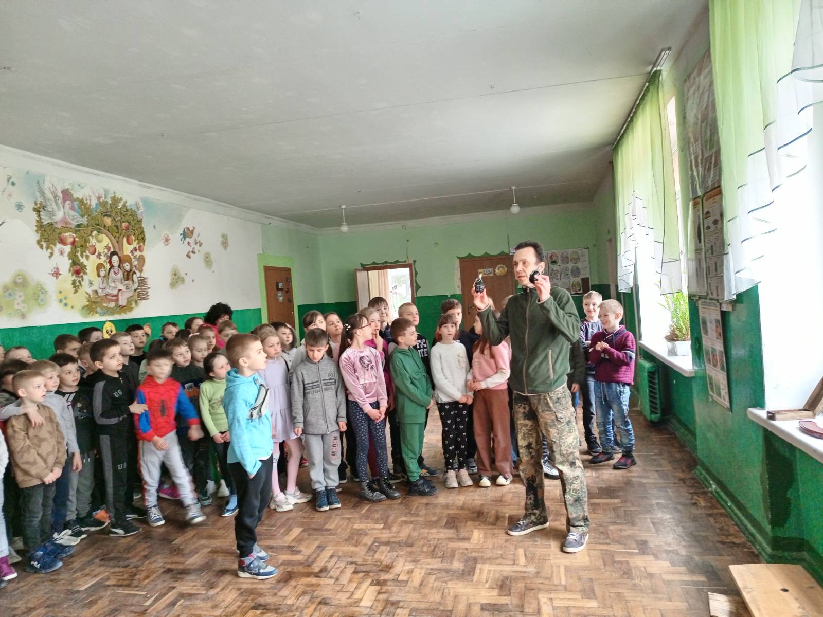 Через воєнні дії, що тривають в Україні, на територіях, які були окуповані та обстрілювались ворогом, залишилось багато вибухонебезпечних предметів. З метою підвищення рівня обізнаності учнів про небезпеку мін у нашій школі стартував цикл профілактичних заходів із мінної безпеки. Вчитель предмета “Захист України” Долик Григорій Богданович ознайомив учнів 1-4 класів із різними видами мін та гранат, розповів про те, як вони виглядають, яку загрозу несуть, як можуть бути замасковані, та особливу увагу приділив правилам безпеки при виявленні вибухонебезпечних знахідок.