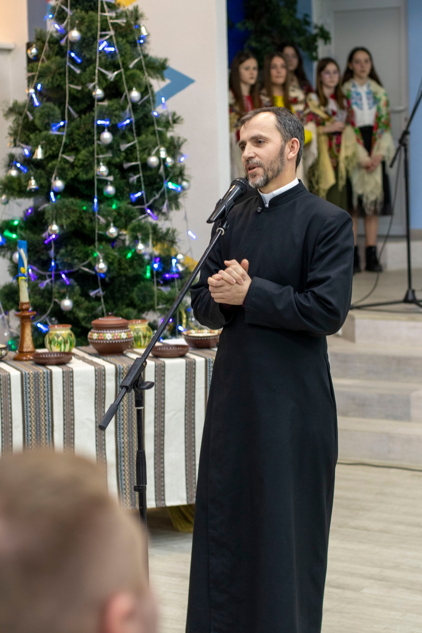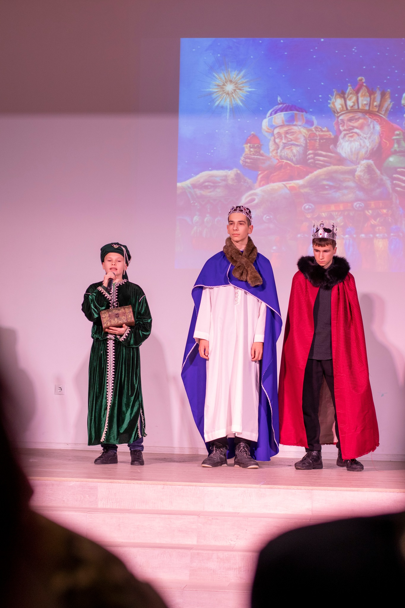 На правах господаря першими виступили учні СЗШ №3 міста Трускавця. І не тільки учні! Господар навчально-виховного закладу – директор школи Ігор Лецюк – показав свої найкращі акторські здібності, втілившись у роль глави сімейства, господаря родини, котра запрошує колядників до хати та дотримується всіх давніх звичаїв. А колядницький вертеп виявився непростим – сучасним, співочим, веселим, патріотичним. Тут і наші доблесні воїни, котрі скували і посадили за ґрати Іродових вбивць, і жарти на актуальну тематику, і новітні колядки типу «Там во Бахмуті».