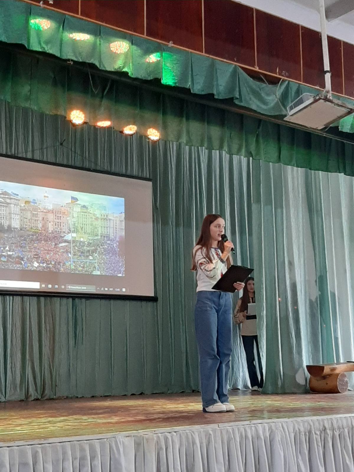 Зала була вщент переповнена учнями, вчителями, батьками. На захід завітав голова міста Андрій Кульчинський, який поділився своїми думками та враженнями, наголосив, що ми, трускавчани, стали свідками подій, котрі увійшли до підручників історії. Зі щирими словами звернувся до присутніх директор школи Роман Гудзеляк.