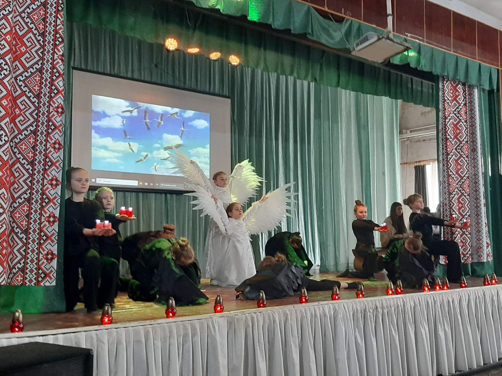 Музика, пісні, хореографічна композиція колективу “Перлина” Будинку учнівської творчості (керівник Наталія Білінська) сплелися в єдине ціле, переносячи глядачів у ті сумні дні 10-літньої давності, які чорним крилом сплили у пам’яті кожного дорослого і назавжди закарбувалися в історії України. Але памʼятаймо слова Павла Тичини: