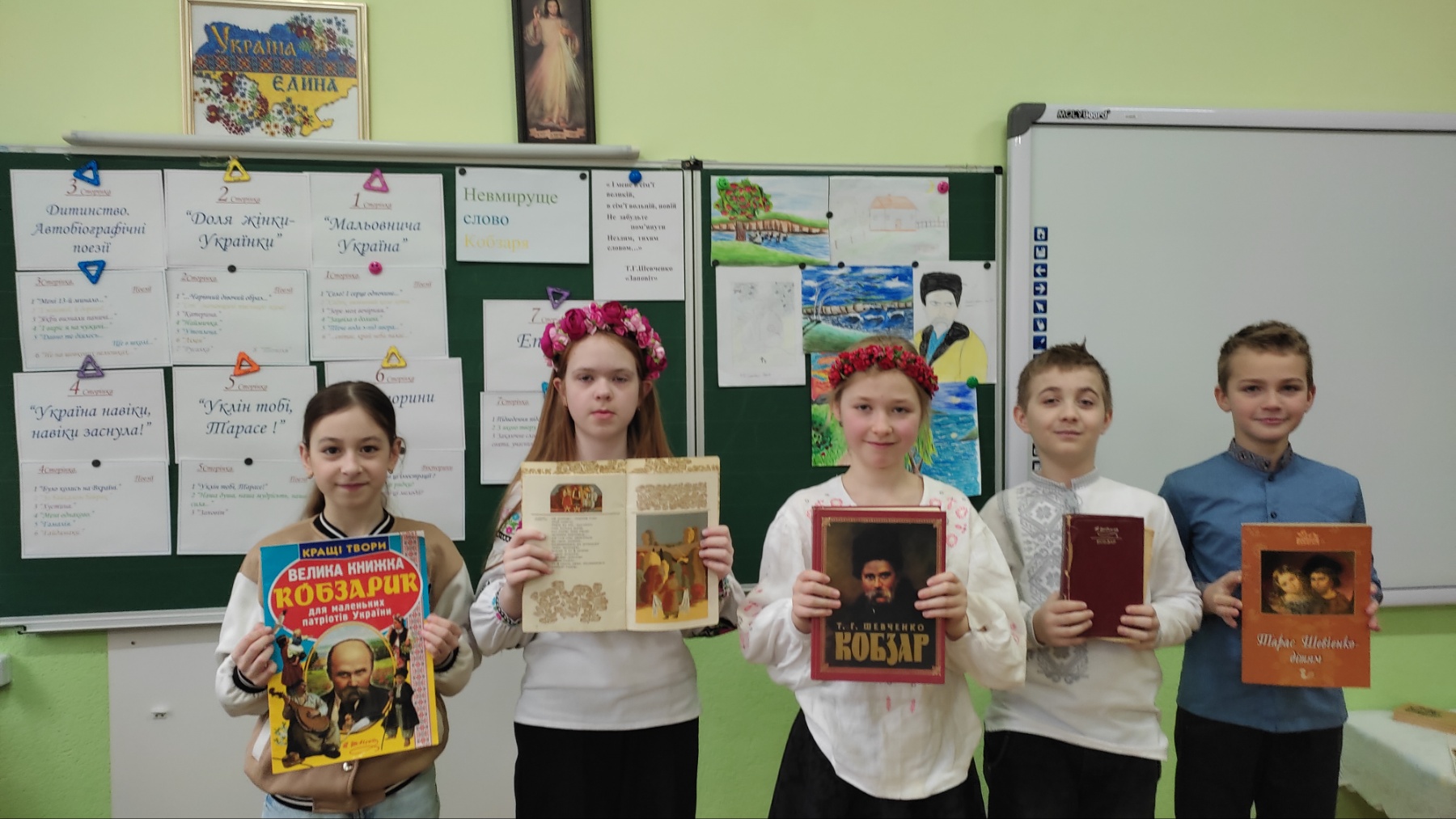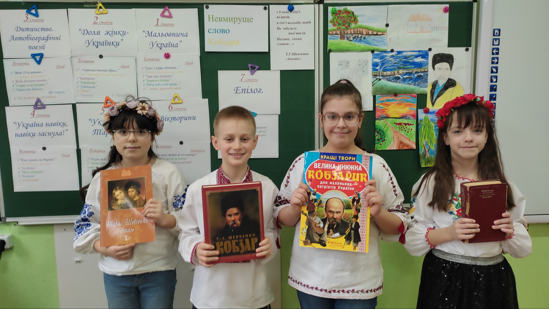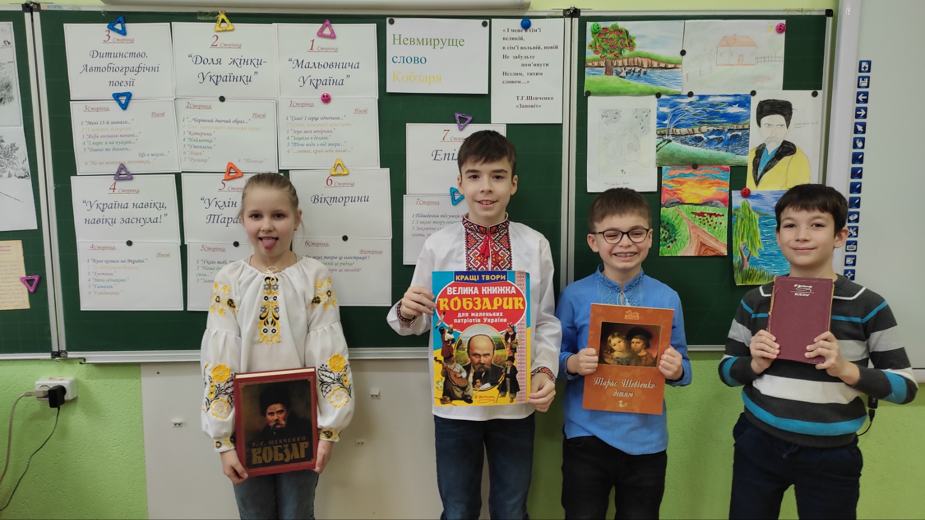 “Уклін тобі, Тарасе, великий наш поете!” Нестандартний урок читання у вигляді Усного журналу “Невмируще слово Кобзаря” пройшов у 4-Б класі ( кл.керівник Світлана Кравець). На сторінках журналу ожили мальовнича Україна, життя жінки-кріпачки оспівані великим поетом, дитинство Тараса, його доля. Музичний супровід та чудова декламація віршів нікого не залишили байдужим.