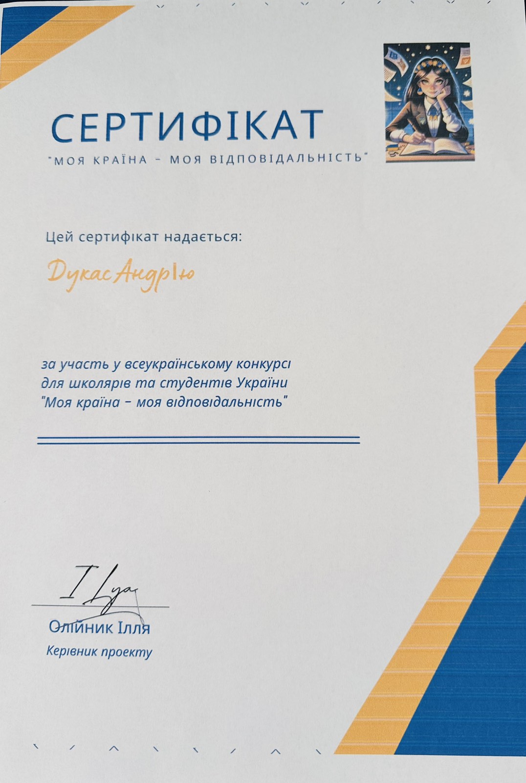 Вітаємо Дипломанта Всеукраїнського Конкурсу “Моя країна – моя відповідальність”