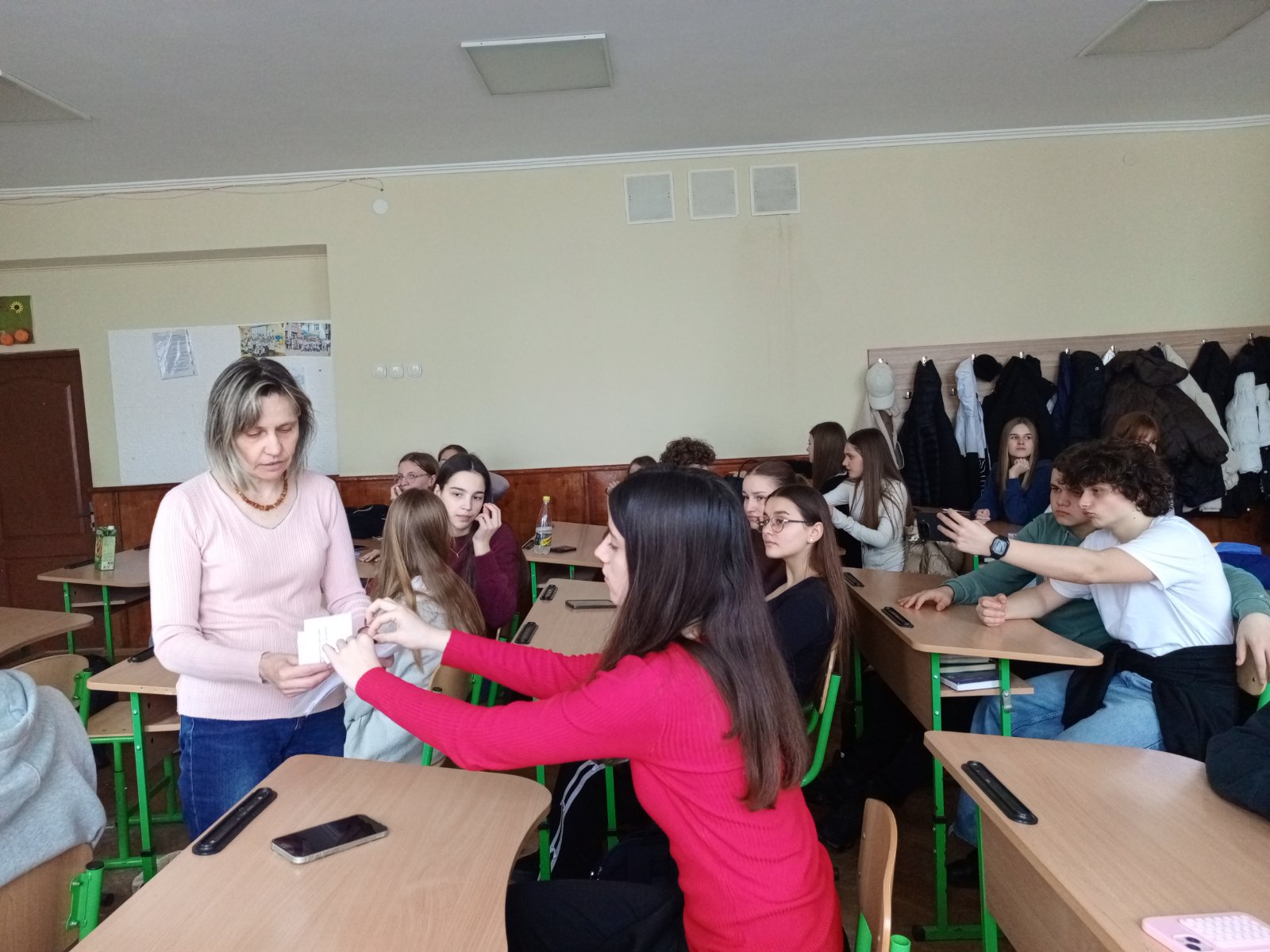 Педагог-організатор Галина АНТОХІ разом із класним керівником 10-А класу Христиною КРЕТЧАК провели для учнів 10-А класу гру-обговорення «Бункер». Учні активно долучилися до обговорення, аргументували свої позиції, аналізували ролі та вчилися знаходити спільні рішення у складних умовах