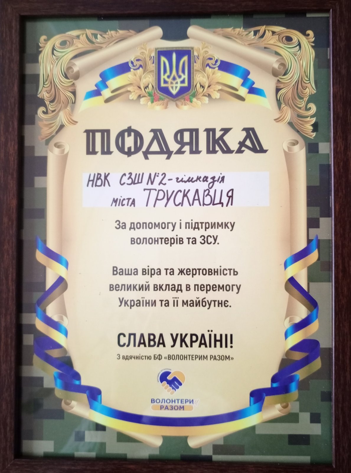 5 грудня в НВК «СЗШ№2-гімназія» відбувся благодійний ярмарок, до якого долучилися учні та батьки, приготувавши різноманітні солодощі, випічку, сувеніри, іграшки, прикраси тощо. Спільними зусиллями вдалось зібрати 162 527 грн, які передали благодійному фонду «Волонтеримо разом» для придбання автомобіля бригаді військовослужбовця, випускника НВК «СЗШ№2-гімназія». Солодощі, які не вдалось реалізувати, передали військовослужбовцям, що перебувають на реабілітації в Трускавці.