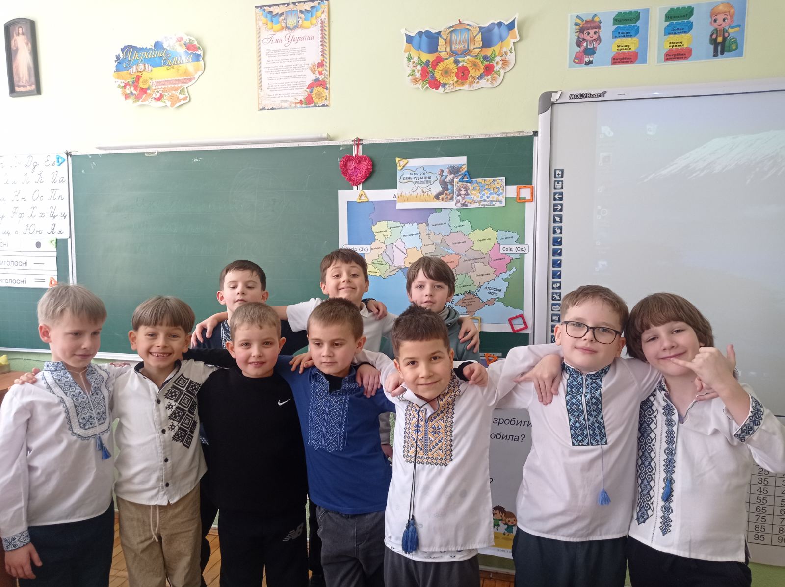 На ранковій зустрічі учні 2-Б класу говорили про єдність українського народу, яка особливо важлива в умовах війни. Обговорювали, що лише разом, підтримуючи одне одного, ми можемо подолати всі труднощі.