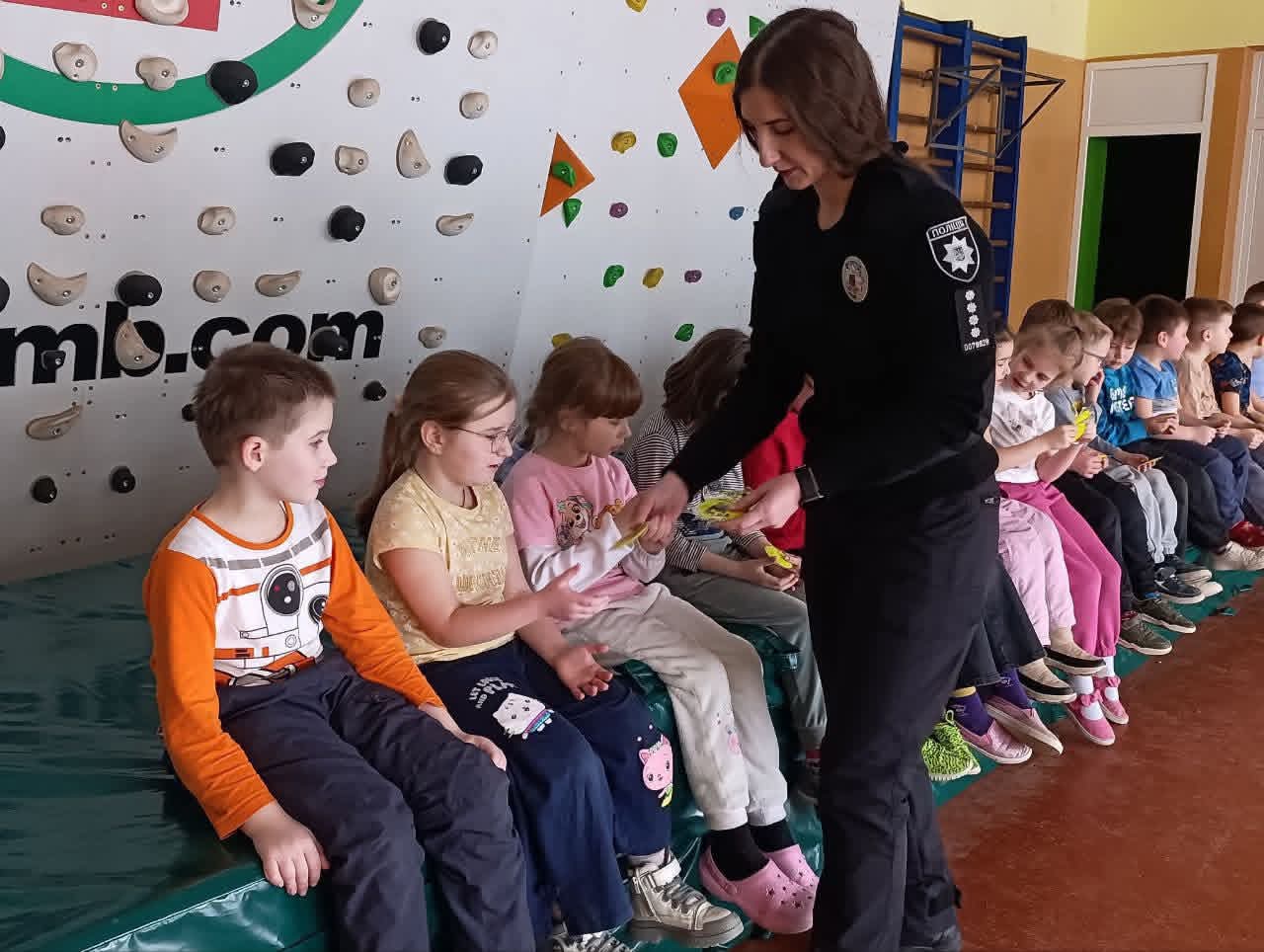 На завершення уроку поліцейська подарувала школярам світловідбиваючі флікери.