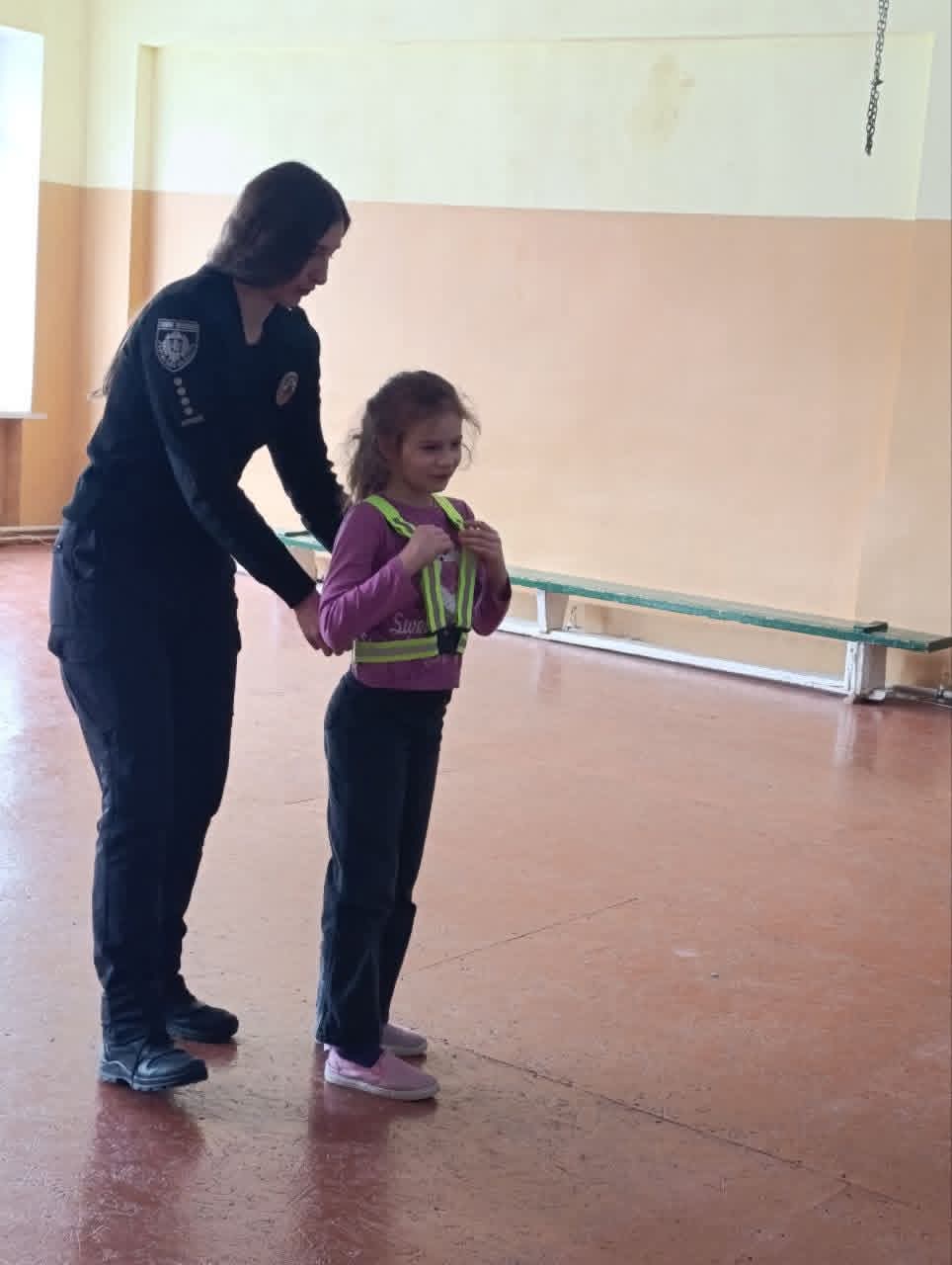провела профілактичний захід для учнів, на якому нагадала школярам про важливість дотримання правил дорожнього руху 🛣️, розповіла про світловідбиваючі флікери і чому їх потрібно носити на одязі пішоходам в темний час доби.