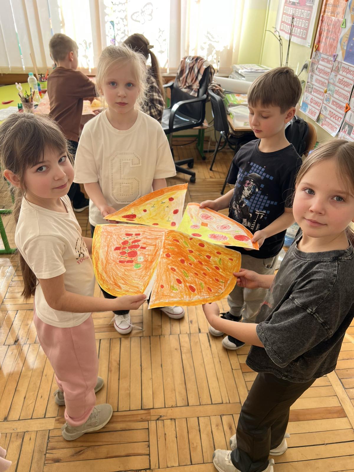Сьогоднішній урок був просто неймовірним! 🌟 Наші маленькі мовці занурились у захоплюючу проєктну роботу, де кожна команда створювала свою улюблену піцу 🍕😍. Діти не лише вивчали нові слова, а й весело спілкувались англійською, обираючи найсмачніші інгредієнти — від ароматного сиру 🧀 до соковитих помідорів 🍅 і хрусткого бекону 🥓.