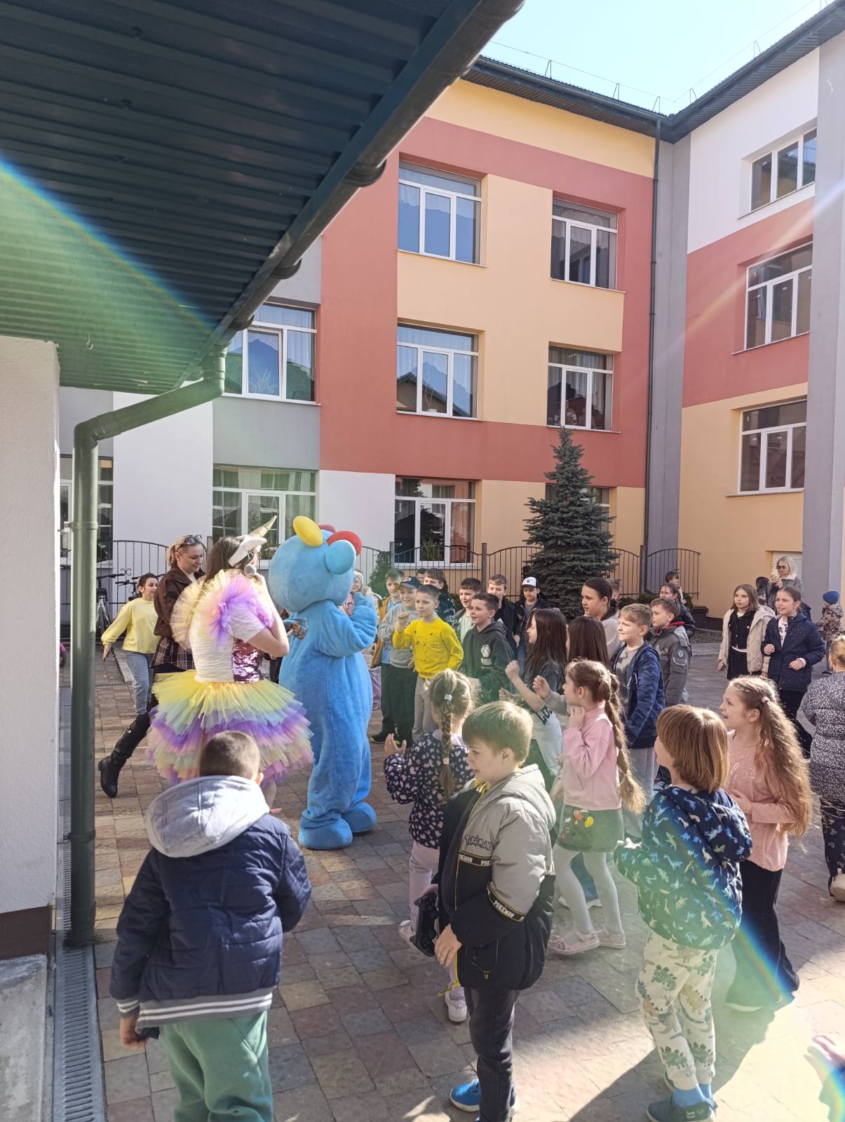 На подвір’ї школи для учнів початкових класів відбулися веселі розваги з аніматорами розважального центру “Забава”. Діти 1-В класу теж брали участь у розвагах. Аніматори створили радісну атмосферу та подарували школярам багато позитивних емоцій. Малеча із задоволенням танцювала, сміялася. Такі розваги допомагають дітям відпочити, подружитися та весело провести час разом. Усі учасники отримали гарний настрій і яскраві враження.🎉