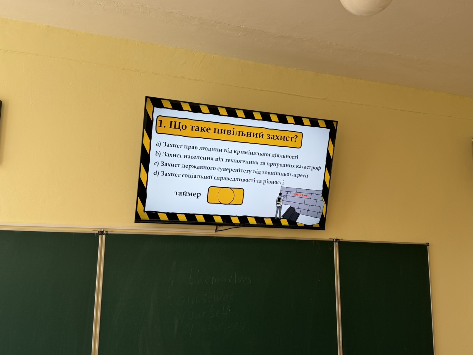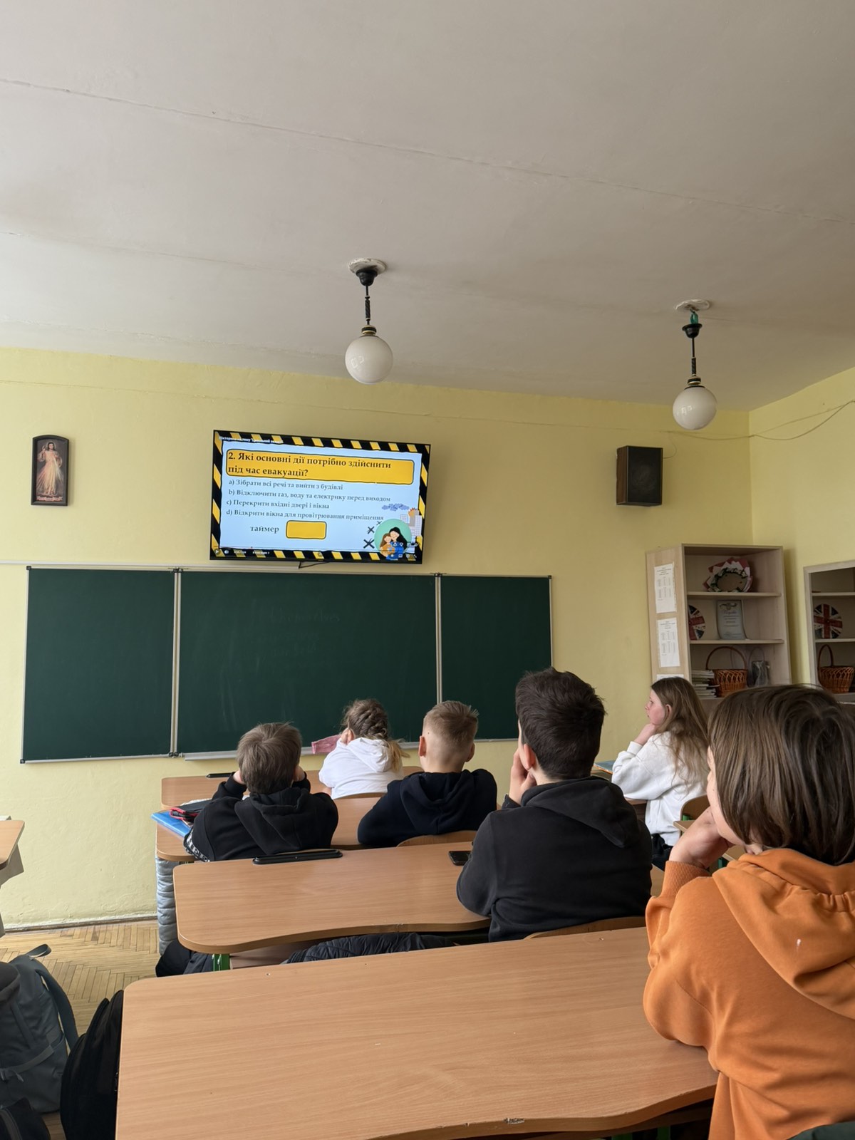 Сьогодні для учнів 7 -Г класу було проведено ранкову зустріч на тему цивільного захисту. Захід пройшов у форматі цікавої та динамічної вікторини, під час якої семикласники продемонстрували свої знання з алгоритмів дій у надзвичайних ситуаціях.