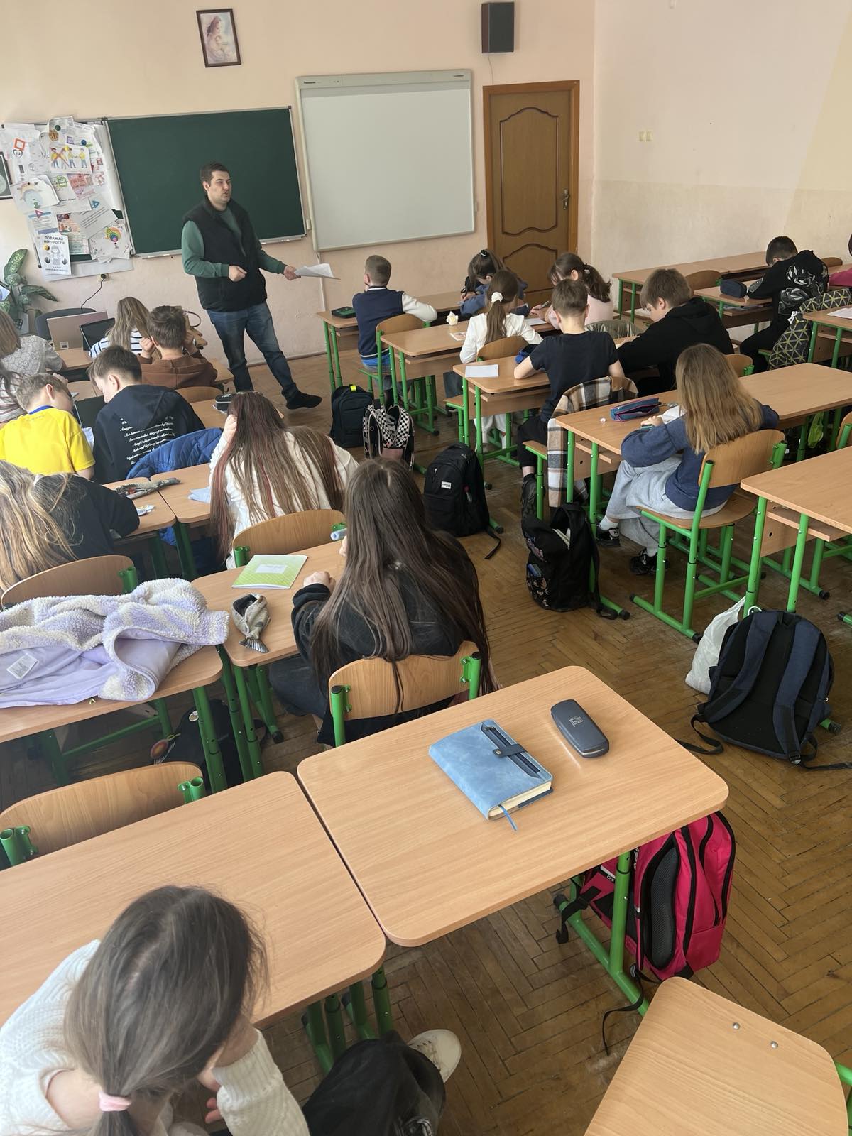 А також шкільний психолог Олег Кирик розповів учням, чому не варто панікувати під час небезпеки і як правильно опанувати своїми емоціями.